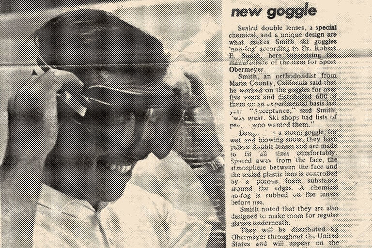 An orthodontist with a passion for powder, Dr. Bob Smith revolutionized snowsports from his kitchen table. Frustrated by fogged-up goggles, he used dental tools, glue, and foam to create the first-ever anti-fog, double-lens ski goggle.