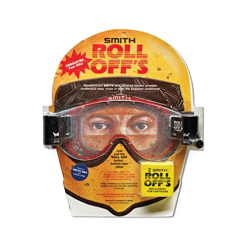 In 1984 SMITH patents the Roll Off film advance system for moto goggles giving riders mud and dust-free vision on demand.